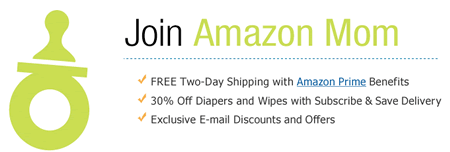 Amazon is promoting their new Amazon Mom service, which is aimed at all moms, dads, and primary caregivers. (They don’t make you send in a picture of your kid or anything.) It’s free to join, and here are the benefits: