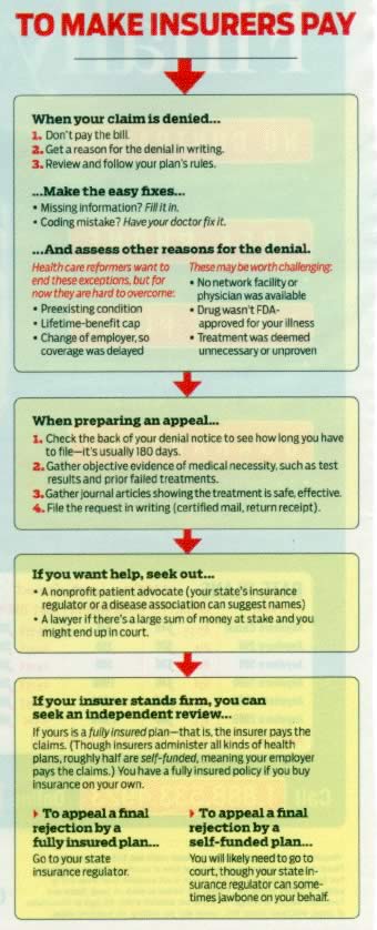 • A nonprofit patient advocate (your state’s insurance regulator or a disease association can suggest names)
