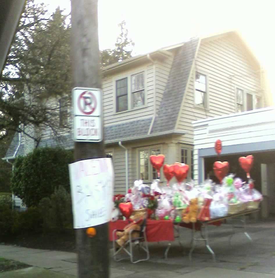 In case you can’t make out the sign, it says “Valentine’s Baskets – Sale”. Sorry for the blurriness, it was taken with a cell phone. I circled around for a second look, but I didn’t stop so I don’t know how much they were. The gift baskets seemed nice, with teddy bears and balloons and such. I wonder if they were from last year’s After-Valentine’s clearance sales, or if they were handmade. There’s a business idea – take advantage of after-Christmas/ Thanksgiving/Easter/Valentine’s day sales, bunch up the cheap knickknacks, and make them into gift baskets for next year. I would probably look into a better venue than selling from your driveway (eBay? local craft markets?).