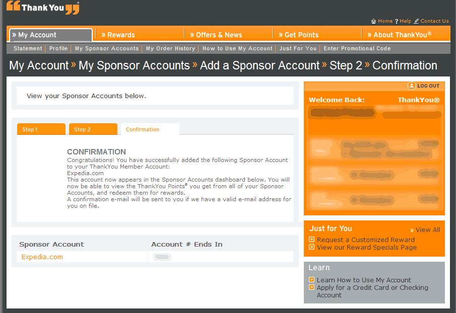 1. Create a new Expedia account. Unless you really use your Expedia account, this makes it easy. When you are signing up, do not enter your existing ThankYou account number. Have them generate a new one, and write it down.