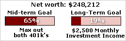 Our total retirement portfolio is now $181,673, or on an estimated after-tax basis, $145,887. At a 4% withdrawal rate, this would provide $486 per month in tax-free retirement income, which brings me to 22% of my long-term goal of $2,500 per month.