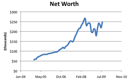 Not much stock market movement this past month. Wife’s 401k was already maxed out at $16,500 for 2009. I made another $5,000 contribution to my Solo 401k, for a total of $10,000 contributed in 2009. This makes us about 80% done with our goal of maxing out both our 401k salary contributions for 2009.