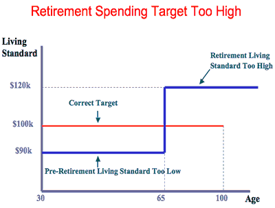 This can actually be a very controversial goal, because it may ask you to borrow money or even stop saving at times, in order to maintain a constant standard of living. Here is an illustration of this idea taken from the website for ESPlanner, which is a financial planning software package made by Kotlikoff.