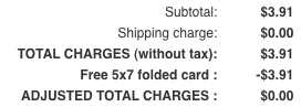 Sweet! Thanks! I was concerned the APRILCARD code wouldn’t work now that it’s May, but it did just now, at least! One card for mom and one for my aunt/godmother. With a little more planning, it looks like you could ship it to yourself so you could actually sign it.