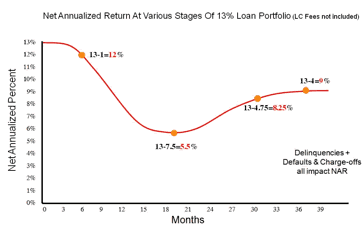 Now, the next part of their argument was that all the loans that originated before they changed their credit requirements and interest rates at the end of 2008 weren’t a valid data set to be analyzing. (That doesn’t make me feel much better because as an early adopter, I hold a lot of those loans.) While improved underwriting may make the average returns higher, I don’t see why it should affect the overall performance behavior over time.
