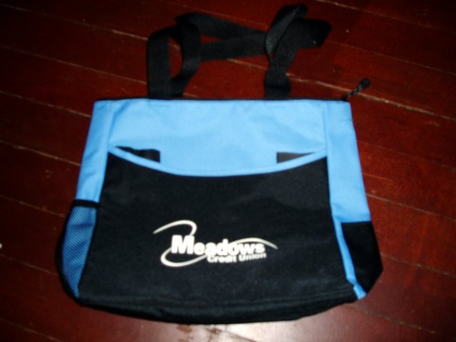 Ok, so in the last couple of weeks I’ve gotten both a baseball cap from Emigrant Direct and a tote bag from Meadows Credit Union (click image to enlarge):